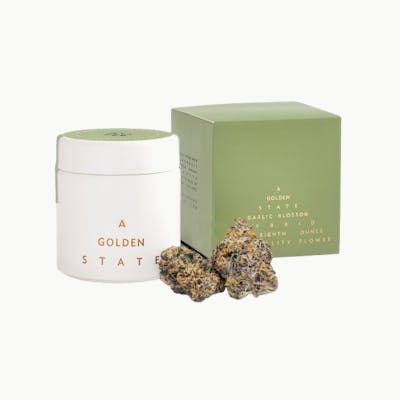 Garlic Blossom (3.5g) by A Golden State is an ultra-premium, indoor-grown hybrid that exemplifies the "savory-meets-sweet" trend in modern cannabis. Cultivated in Northern California using snowmelt from Mt. Shasta, A Golden State is known for some of the cleanest, most terpene-dense flower in the state.