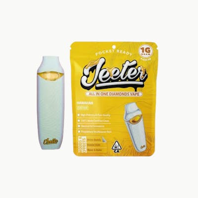 The Hawaiian Liquid Diamond All-In-One (1G) by Jeeter is a high-performance sativa designed to deliver a "mental vacation" through ultra-refined potency and tropical flair. This device features Jeeter’s signature Liquid Diamonds—a concentrate made by melting 98%+ pure THCA diamonds into a translucent oil—typically testing between 81% and 84% THC for an exceptionally clean and hard-hitting experience. Inspired by the legendary Hawaiian Landrace lineage, the flavor profile is a "sunny" explosion of fresh-cut pineapple, zesty citrus, and sweet tropical fruits with a faint peppery finish. Its effects are archetypal of a premier island sativa, offering a bubbly wave of euphoria, creative energy, and social focus that remains functional and uplifting without the jitteriness often associated with heavy sativas. The hardware is a sleek, pocket-ready all-in-one that features "Dark Mode" (an LED that stays off while inhaling for discretion), USB-C rechargeability, and specialized ceramic core technology engineered to handle the high viscosity of liquid diamonds without clogging or overheating.
