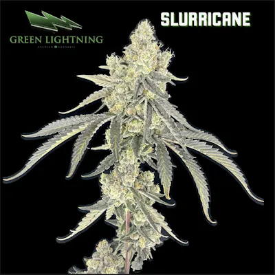Slurricane by Green Lightning is an indica-dominant hybrid strain (roughly 60% Indica / 40% Sativa) created by crossing Do-Si-Dos and Purple Punch. This strain is highly regarded for its potent, deeply relaxing effects and sweet, dessert-like flavor profile. Key Details: Genetics: Do-Si-Dos x Purple Punch. THC Content: Typically ranges from 20% to 28% (some phenotypes up to 30%). Type: Indica-dominant hybrid. Primary Effects: Deep body relaxation, euphoria, and sedation. Best For: Evening or nighttime use. Appearance and Aroma Slurricane buds are generally dense, compact, and highly resinous, often featuring vibrant purple hues mixed with light green, covered in a thick layer of trichomes. The aroma is complex, featuring bold notes of berries, grape, and citrus, with subtle earthy, piney, and spicy undertones. Flavor Profile Users describe the taste as fruity, sweet, and smooth, with a creamy berry richness on the exhale that may include hints of herbal spice. Effects Slurricane delivers a strong, long-lasting indica experience: Initial Effects: A calm, euphoric mental buzz that clears the mind. Body High: Intense physical relaxation that can lead to couch-lock and sleepiness. User Experience: Ideal for unwinding after a long day, treating anxiety, or managing insomnia. Possible Cons: Can cause dry mouth, spacey sensations, or excessive sedation for beginners. Medical Uses Medical patients often select Slurricane to alleviate symptoms of: Chronic pain and muscle tension. Stress and anxiety. Insomnia. Appetite loss. Growing Information Slurricane is considered moderately easy to grow, thriving in warm, sunny environments, and typically features a flowering time of about 60–72 days.