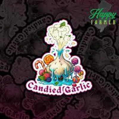 "Happy Farmer Candied Garlic" is a specific indica-dominant hybrid cannabis strain, not a food product. It's a cross between JMO and Slurup strains, known for a unique flavor profile and potent effects. Strain Details Lineage: The strain was created by crossing JMO (Jelly Breath x GMO) and Slurup/Slurricane. Flavor & Aroma: It offers a complex sensory experience, beginning with initial notes of savory garlic and gas, followed by a surprising sweetness on the exhale with hints of berries and cake.