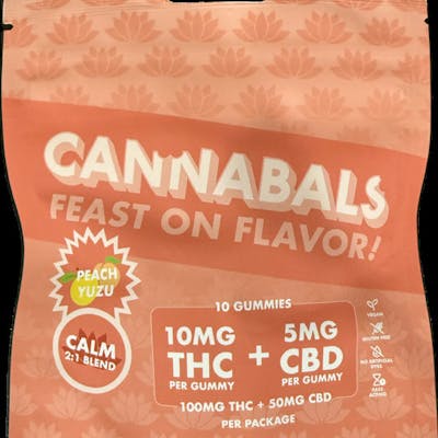 Cannabals | Gummies | Peach Yuzu | Calm | 2:1 | THC:CBD | 10mg | 10 Pack | 100mg | Hybrid