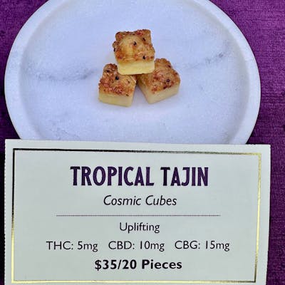 5mg THC | 15mg CBD | 10mg CBG per piece | 20 pieces per pack | Juicy mango and tangy passion fruit meet a creamy coconut milk base, dusted with a zesty Tajín kick. This tropical bite delivers uplifting relaxation with a spark of creativity and focus. Best For: Midday focus, mood elevation, guilt free self-indulgence. Serving Size: 1 cube | Gluten-Free | Vegan | Artisan-Made