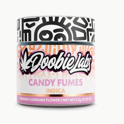 Doobie Labs | Candy Fumez | 3.5G Type: Indica Cannabinoid Profile THC: 30.98% Effect Profile Relaxed Euphoric Sleepy Top Flavors Sweet candy Ripe berry Cool mint Overview Candy Fumez by Doobie Labs is a potent indica crafted for deep relaxation and full-bodied calm. With nearly 31% THC, this 3.5G flower delivers a rich sensory experience blending sugary sweetness, juicy berry notes, and a refreshing mint finish. Expect a euphoric lift that gently settles into soothing body relaxation, making it ideal for evening unwinding, stress relief, or preparing for restful sleep.