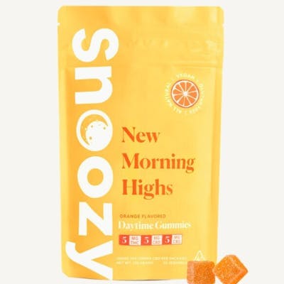 Waking up is hard sometimes. Find inspiration with Snoozy New Morning Highs gummies. New Morning Highs help you greet the day with a calm mind, putting a pep in your step that will last well into your day. A perfect complement to Snoozy Sleep with Benefits. Each gummy contains cannabinoids such as THC, CBD, and CBG. Formulated with organic and all-natural ingredients to help you seize the day.