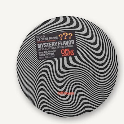 Looking for a clue? Nice try. Off Hours “Mystery Flavor” live rosin gummies are designed to keep you guessing. Paired with Ice Cream Zundae’s dessert and candy notes, they deliver a creative and calming high that might just help you solve the mystery… or not.