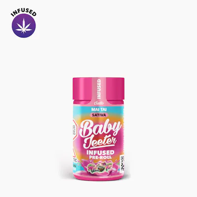In each jar, you'll find a hand crafted, hand rolled 5 0.5-gram Jeeter joints. They're made with premium indoor grown flower, infused with oil and kief. Mai Tai is a tropical sativa strain that likely gets its sweet and tangy terpene profile from crossing Maui Waui with Tutti Frutti. Popping open a jar of Mai Tai, you’ll be greeted with notes of citrus and berries combined with undertones of fresh, damp earth and tropical flowers similar to what the cocktail offers. The taste is similar to the exhale, as its flavor aligns even more like the fruity cocktail it's named after. Mai Tai is the perfect strain for a lazy afternoon spent with family and friends. It leaves you feeling euphoric, relaxed, lifted and social. This strain may help relieve chronic pain, depression, inflammation and stress. “Our infused pre-rolls get their flavor from a mix of cannabis-derived and botanical terpenes. Within our flower and kief are cannabis-derived terpene profiles, unique to each strain, that determine not only the strain's flavor, but its effects as well. We enhance this profile by analyzing the terpenes in the flower with state-of-the-art lab equipment that breaks them down into their individual components and ratios. We then recreate this profile with botanical terpenes in our oil infusions and infuse that into the flower and papers to enhance the flavor and effect.”