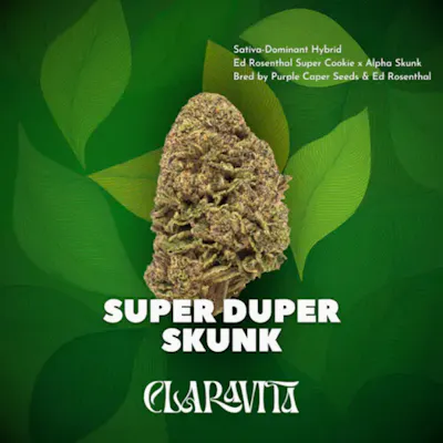Hybridity: Sativa-Dominant Hybrid (60% Sativa / 40% Indica) Lineage: Ed Rosenthal Super Cookie x Alpha Skunk Breeder: Purple Caper Seeds & Ed Rosenthal Super Duper Skunk is a standout hybrid cannabis strain making waves in Massachusetts for its perfect fusion of classic genetics and modern potency. Bred collaboratively by Purple Caper Seeds and the legendary Ed Rosenthal, this cultivar blends Ed Rosenthal Super Cookie with Alpha Skunk, resulting in a 60/40 sativa-indica hybrid that delivers balanced, versatile effects. Known for its nostalgic appeal, Super Duper Skunk offers a creamy, skunky aroma with subtle gaseous undertones, capturing the essence of old-school cannabis while elevating it with modern flavor and bag appeal. The strain’s smooth, flavorful smoke and eye-catching buds make it a favorite among both new and seasoned consumers. With effects that are uplifting yet calming, Super Duper Skunk is ideal for those looking for mental clarity, mild relaxation, and an all-day companion strain. Whether you’re exploring your local Massachusetts dispensary or revisiting classic cannabis profiles, Super Duper Skunk delivers a timeless experience with a contemporary edge.