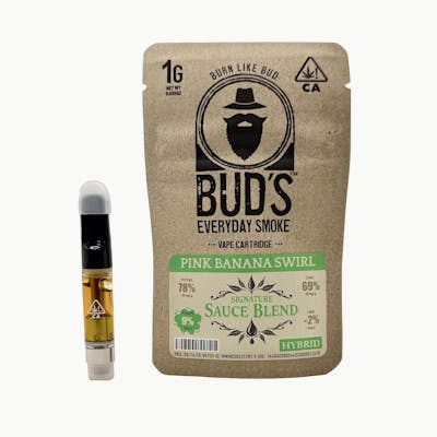 Indulge in the sweet, smooth vibes of Pink Banana Swirl, a perfectly balanced hybrid from Bud’s Signature Sauce—the value vape brand you can trust. This high-terpene vape cartridge bursts with tropical banana and ripe berry flavors, finished with a hint of creamy vanilla. Expect a flavorful, full-bodied pull with a rich aroma of fresh fruit and a touch of spice. Crafted for both relaxation and inspiration, Pink Banana Swirl delivers a satisfying, well-rounded effect—ideal for any time of day. Whether you’re unwinding or tapping into creativity, this strain offers a smooth and flavorful escape.