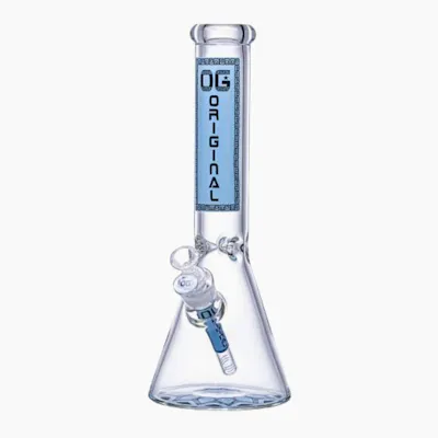 OG Original Glass Beaker Bong for Cannabis – Durable Water Pipe with Smooth Filtration Classic beaker-style glass bong featuring OG Original branding with a clean blue accent design. Crafted from durable borosilicate glass for smooth, reliable cannabis hits and everyday use.