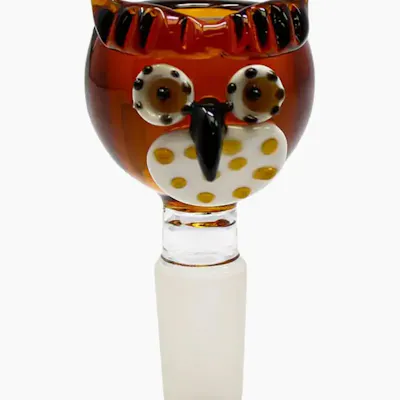 **Owl Design Glass Bowl – 14mm** Add personality to your setup with the **Owl Design Glass Bowl – 14mm**. Crafted from durable, high-quality glass, this bowl features a detailed owl design that brings a fun and unique look to your piece. Designed for smooth airflow and a secure 14mm fit, it delivers reliable performance for everyday use. Perfect as a decorative upgrade or replacement, this glass bowl combines durability, function, and eye-catching style.