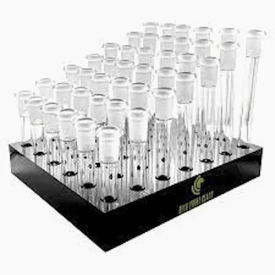 Premium glass downstems in assorted sizes, crafted from durable heat-resistant glass to ensure smooth airflow, enhanced filtration, and reliable performance for a clean and consistent cannabis smoking experience.