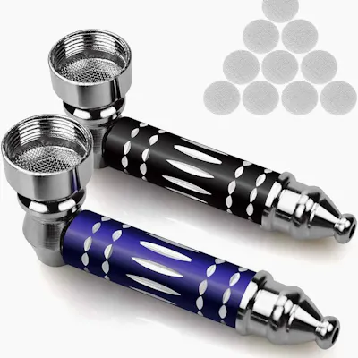 Premium metal hand pipes featuring a durable construction with ergonomic grip and decorative cutout design, available in multiple color finishes. Each pipe includes a removable bowl and comes with mesh screens for smoother filtration, delivering reliable airflow, easy maintenance, and a clean, consistent smoking experience.
