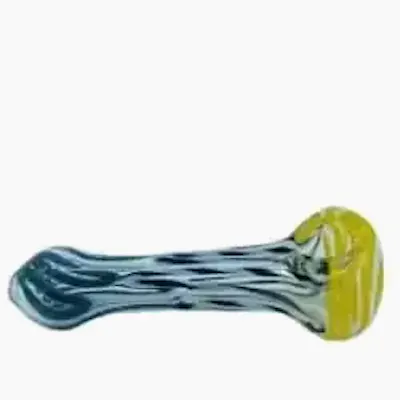 Handcrafted glass spoon pipe featuring a sleek, elongated body with twisted linework and a contrasting color-accented bowl. Made from durable heat-resistant glass, it includes a deep bowl and carb hole for controlled airflow, delivering smooth hits and a clean, flavorful smoking experience.