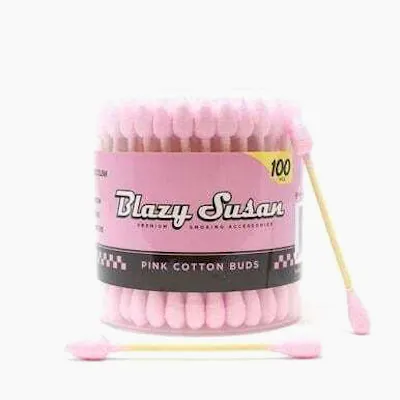 Blazy Susan pink cotton buds featuring soft, high-quality tips and durable stems, designed for precise cleaning of cannabis accessories, removing residue effectively while maintaining a clean and smooth smoking experience.