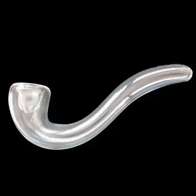 glass Sherlock-style pipe featuring a smooth, curved design with a clear minimalist finish. Made from durable heat-resistant glass, it includes a rounded bowl and carb hole for controlled airflow, delivering smooth, cool hits and a clean, flavorful smoking experience in a classic, elegant form.