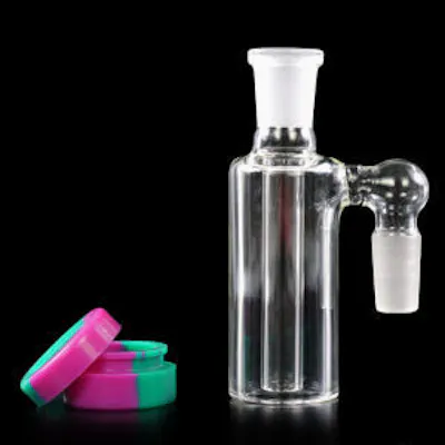 Upgrade your setup with this glass ash catcher, designed to improve filtration while keeping your main piece cleaner. It helps trap ash and debris before it enters your water pipe, resulting in a smoother, more enjoyable experience. Featuring a Silicone Base + Lid and 14mm 90 joint , this ash catcher enhances diffusion for cooler, cleaner hits. The design adds a convenient clean up while maintaining strong performance. Crafted from durable glass, it's built for long-lasting use and easy maintenance. A simple yet effective upgrade for anyone looking to improve both function and cleanliness.