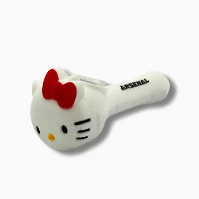 Novelty Hello Kitty-themed glass hand pipe featuring a cute character face with a signature bow and smooth white finish. Crafted from durable heat-resistant glass, it includes an integrated bowl and carb hole for controlled airflow, delivering smooth hits and a fun, collectible smoking experience.