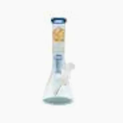 Clear glass cannabis bong with beaker base and colored rim for smooth filtration Premium cannabis water pipe featuring durable glass construction and simple functional design High-quality beaker-style bong with angled downstem and removable bowl for easy use Stylish cannabis bong with clean transparent finish and stable base Durable glass water pipe for cannabis with efficient airflow and classic aesthetic