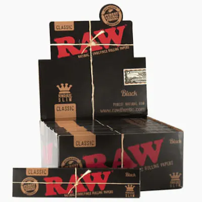 **RAW Black Classic King Size Slim Rolling Papers** Experience ultra-thin performance with **RAW Black Classic King Size Slim Rolling Papers**. Made from natural, unrefined paper, these premium king size slim sheets provide a smooth, slow burn and clean taste. Designed for easy rolling and consistent results, they're ideal for those who prefer a thinner, high-quality paper. Perfect for everyday use, RAW Black papers deliver reliable performance and refined quality.