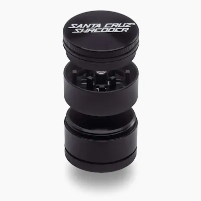 Santa Cruz Shredder premium aluminum herb grinder featuring a durable multi-piece design with patented sharp cutting teeth, engineered for smooth grinding, efficient herb processing, and consistent texture for an enhanced cannabis preparation experience.