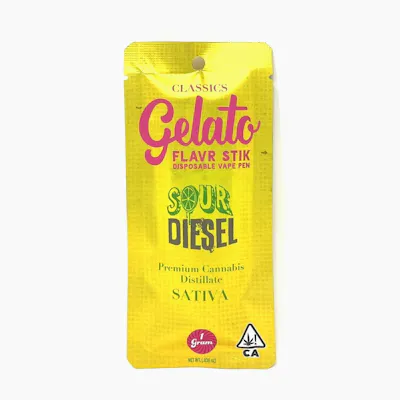 Sour Diesel a sativa that has an invigorating cerebral high that open up doors of creativity. Many people choose to smoke sour diesel at the beginning of their day for a head start. These artisanal products are designed to advance the evolution of the Cannabis industry into mainstream with a bit of colorful fun. The Gelato Brand and Family have a motto, "Do what is right over what is easy!". Flavors Diesel Lemon Citrus