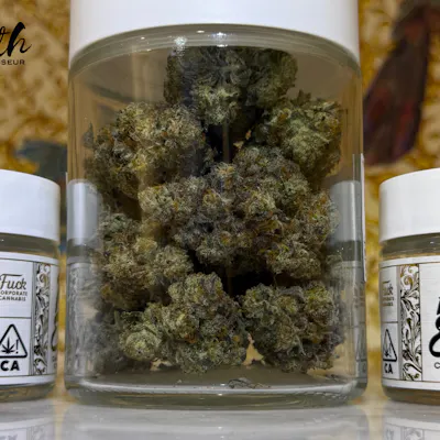 Flower so good, you'd think you waited an hour at a grocery store parking lot for your plug to finally arrive with it. Absolutely chronic--dense sticky-icky crystal covered buds that wreak of sweet and sour, but also gassy diesel. A stoney indica cultivated in the foothills of the Shasta Mountains.