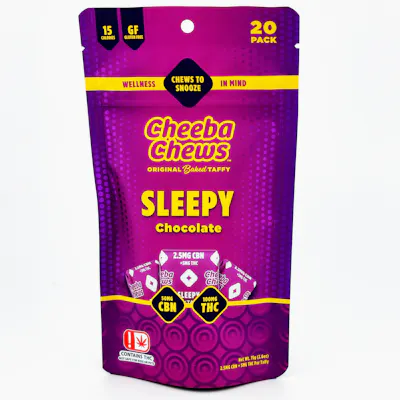 20 chews to help you snooze. Enjoy our 2:1 blend of THC and CBN, with a touch of melatonin, to help you rest easy. Each package contains 20 individual chocolate taffy chews. With just enough THC to help enhance the effects of CBN (naturally occurring cannabinoid known to act as a sleep-aid), enjoy one deliciously rich chocolate taffy just before bedtime. Sweet dreams are made of these!