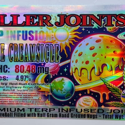 Introducing Baller Joints Orange Creamsicle, a nostalgic treat transformed into a premium cannabis experience. **Features:** - **Total THC:** Comes in at a high 89.69mg, designed for potency. - **Terpenes:** A rich profile at 8.00%, providing a distinct, creamy citrus aroma. - **Volume:** Each pre-roll is packed with .5 gram of finely ground nugs for an even and satisfying burn. **Benefits:** - Emulates the classic dessert flavor, combining citrusy orange with creamy undertones for a delightful taste. - The potent THC content ensures a lasting and intense effect, ideal for those seeking a strong, yet comforting high. Baller Joints Orange Creamsicle is a perfect example of Red Run’s commitment to bringing unique, flavor-forward experiences to connoisseurs of fine cannabis.