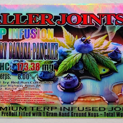 Introducing Baller Terp Infusion Blueberry, a premium cannabis experience designed to delight your senses and elevate your moments. **Features:** - Total THC: 173.38 mg for potent effects. - Botanical Terpenes: 8.00%, expertly chosen for aromatic depth. - Specially crafted by Red Run Cultivators, renowned for their quality and expertise. **Benefits:** - Indulge in the sweet symphony of blueberry - Perfect for a blissful escape or a joyful gathering with friends, promising memorable experiences. - Each joint is meticulously prepared with 1 gram of finely ground nugs to ensure a smooth burn and consistent flavor. In the spirit of Red Run's tradition of excellence, this terp infused joint offers an unmatched quality, sure to become a cherished addition to your collection.