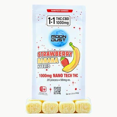 Find perfect balance with Moon Dustβs 2000mg Nano Strawberry Banana 1:1 Gummies β equal parts calm and clarity, powered by advanced nanotechnology.