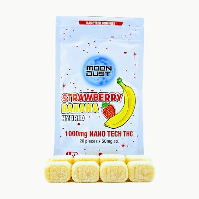 Double down on flavor with Moon Dustβs 1000mg Nano Strawberry Banana Hybrid Gummies β sweet, smooth, and fast-acting.