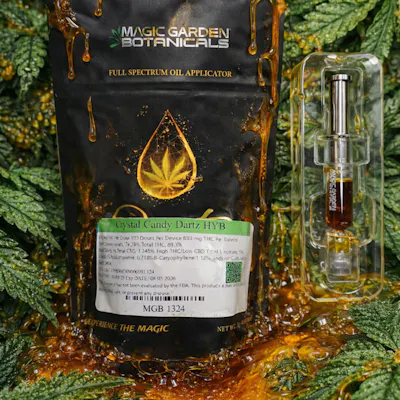REDEFINE YOUR DABBING RITUAL WITH DARTZ, THE CUSTOM DISPOSABLE DAB SYRINGE FROM MAGIC GARDEN BOTANICALS. THIS INNOVATIVE APPLICATOR DELIVERS PRECISION DOSES OF POTENT, FULL-SPECTRUM CONCENTRATE AT THE PUSH OF A BUTTON, MAKING IT EFFORTLESS TO ENJOY CONCENTRATES ON YOUR SCHEDULE. PURE, POWERFUL, AND PORTABLE, DARTZ ARE ENGINEERED FOR THOSE WHO DEMAND BOTH QUALITY AND CONVENIENCE FROM THEIR CANNABIS EXPERIENCE.