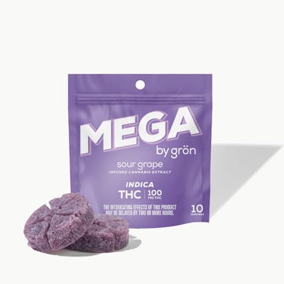 This edible goes by the nickname “The Big Chill.” Our Sour Grape Mega packs a massive mellow feeling with a slap of sour grape.