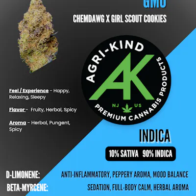 GMO – 7g Flower by Agri-Kind GMO, often called Garlic Cookies, is a powerful indica-leaning strain known for its bold aroma and deeply relaxing effects. This standout cultivar delivers a pungent blend of garlic, earthy funk, and diesel with subtle savory sweetness that makes it unmistakably loud. The experience typically begins with a heavy wave of euphoria that settles into a full-body relaxation, making it ideal for evening sessions or winding down after a long day. With its rich terpene profile and strong, long-lasting effects, GMO is a favorite for those who enjoy flavorful flower with serious potency. 🌿🧄⛽💨