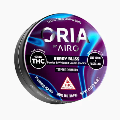 Award-winning AIRO cannabis is now available in edible form ORIA. Your favorite artisan tastes in a mouthwatering gummy. Each delicious gummy is vegan, gluten-free and crafted with all-natural ingredients.