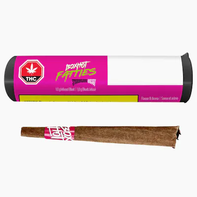 BOXHOT PRESENTS: Strawberry Diesel Fatties, 1.0 g badass blunts infused with bold flavour and some of the sexiest THC distillate on the market. This well-balanced sativa takes you to the clouds with delightful strawberry flavours complemented by robust notes of gas. All BOXHOT Fatties feature over 30% THC and 5% terpenes and use slow-burning chamomile wraps for a smooth, consistent blaze.