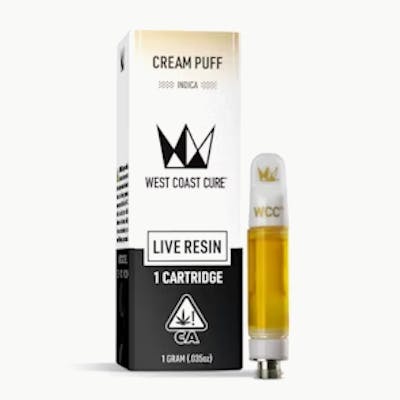 Indulge in the decadent serenity of WCC's Cream Puff Live Resin Cart. Crafted from flash-frozen, freshly harvested buds to preserve its full terpene and cannabinoid profile, this indica vape delivers a rich, authentic experience. With its decadent flavors and calming effects, Cream Puff offers a truly lux escape.