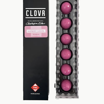 Clovr by Christopher Elbow Chocolate Bonbons! Indulge in luscious raspberry caramel bonbons enrobed in velvety white chocolate. The best part? Every purchase contributes to breast cancer awareness. We use THC distillate from our extraction lab to infuse caramel made in our copper kettle. Nutritional Info: 6 servings/package 6 pieces/10mg each Gluten-free