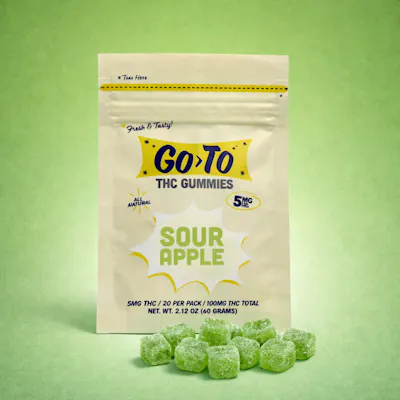 Go To Gummies Your go-to for juicy flavor, clean ingredients, and a feel-good high that really works. Each gummy delivers 5 mg of THC, made with all-natural, gluten-free ingredients and bold, mouthwatering taste. 20 gummies per bag—perfectly dosed for wherever life takes you.