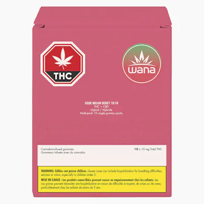 Meet our Sour Melon Berry a 10-pack of individually wrapped gummies. Each gummy contains 10mg THC and 10mg CBD, for a total of 100mg of each per pack. Bursting with juicy watermelon and sweet strawberry, each piece is layered with a mouthwatering sour twist that lingers on the tongue. Perfect for anytime enjoyment, these gummies offer bold flavour, precise dosing, and a delicious experience.