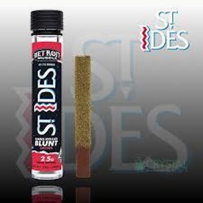 The St. Ides 2.5g blunt is premium indoor whole flower rolled by hand with premium strain-specific flower, and triple infused with diamonds, hash and kief.
