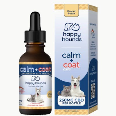 Happy Hounds Calm + Coat Drops are the best calming drops for dogs designed to soothe stress, reduce anxiety, and improve skin & coat health. Made for both dogs and cats, these drops provide a natural, holistic alternative to pet anxiety meds that deliver powerful anxiety relief with Hemp plus Superfoods.