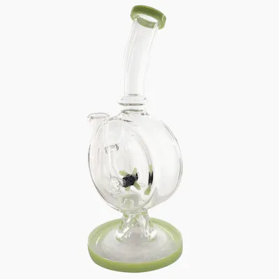 A simple water pipe, this one is easy to clean and maintain while still providing a fantastic smoking experience. This piece features a working propeller perc to spin around while taking your haul. Keep yourself entertained with this beautiful piece from Illuminati Glass. These dab rigs are compatible with concentrates by adding a banger, carb cap, and dab tool. These rigs can also be used with dry herbs by adding a bowl. Dab Rig Features: ======================== Compatible with Concentrates Size: 10" Tall Propeller Perc Colour Accents Working Glass Propeller Banger Hanger Style Water Pipe