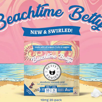 Beachtime Betty’s Strawberry Lemonade Fruit Chews deliver a refreshing, summer-inspired flavor of ripe strawberries and tart lemonade, crafted for a smooth, balanced edible experience. These chews are made with full-spectrum cannabis and enhanced with CBG, offering a unique blend of relaxation and light mood elevation. Infused with vitamins C & D, they’re designed to promote a feel-good, easygoing vibe, perfect for unwinding without feeling overly heavy. Each chew is precisely dosed (commonly 5mg or 10mg THC per piece) for consistent effects.