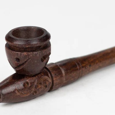 Not only can you purchase metal, glass, or plastic pipes, but there's something special about wooden pipes that you won't find with any other type. They used to represent class and sophistication, while anyone could obtain a cheap metal or clay pipe. This intricately carved, 3-inch wooden pipe will transport you to the pages of a detective novel from a bygone era. Size : 3" Pattern may vary