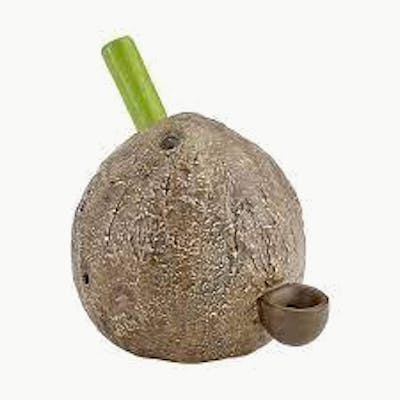 The Coconut Pipe! At the base of the coconut is a bowl where you can pack your tobacco and light it. The smoker filters through the coconut to the pipe at the top. This fabulous Coconut Pipe is fully functional and comes packaged in a colour gift box. Make your smoke unique! Features: Size: 5.5" x 4.5" x 5.25" Ceramic Fully Functional Realistic coconut shape with a rough-textured husk Tones of brown and cream