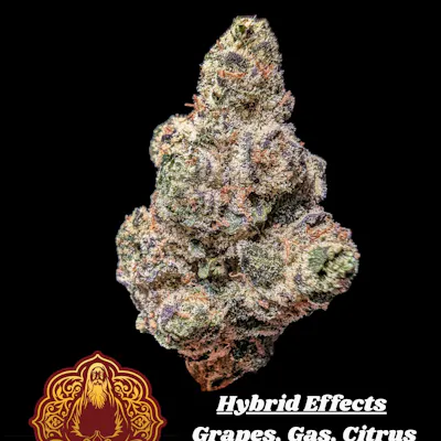 Grape Gas- Grape Gas is a balanced hybrid (OG Chem x Grand Daddy Purple). It offers bold flavors of spicy grape candy, sour citrus, and heavy gassy diesel. The aroma is pungent, featuring sour diesel with hints of citrus and grape that intensify as it burns. The high begins with an uplifting, euphoric rush and a light tingly energy that can boost motivation. As it settles in, the effects become calming and slightly sedative, leaving you relaxed and carefree Great for either day or night
