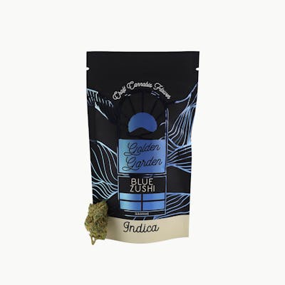 Blue Zushi is an indica strain made by crossing Zkittlez and Kush Mints. With Blue Zushi, you'll experience a calming, full-body high that melts away stress, leaving you in a peaceful, tranquil state. Its sweet, berry-like flavor, with a touch of earthy undertones, offers a delicious and smooth smoke that soothes the senses.