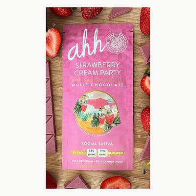 This LIMITED EDITION, pink colored, “strawberries & cream” flavored white chocolate is a celebration! The fresh, gentle flavor of ripe strawberries nestled in rich cream, mingles with the terps from the rosin, lovely. Infused with award winning Treeworks Hash Rosin, using carefully selected Sativa leaning strains. Complemented by 200 mg CBG and delicious, nutrient dense dragon fruit, this hand crafted edible’s unworldly color, flavor and punch were made for the outgoing cannabis enthusiast… Play in Pink Paradise!