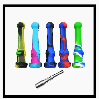 This Silicone Honey Straw comes with your choice of a quartz or a titanium nail for maximum flavor and a clean burn. Silicone smoking accessories are indestructible, so they're great for camping, tailgating or just being on the go. Size, shape and color may vary.
